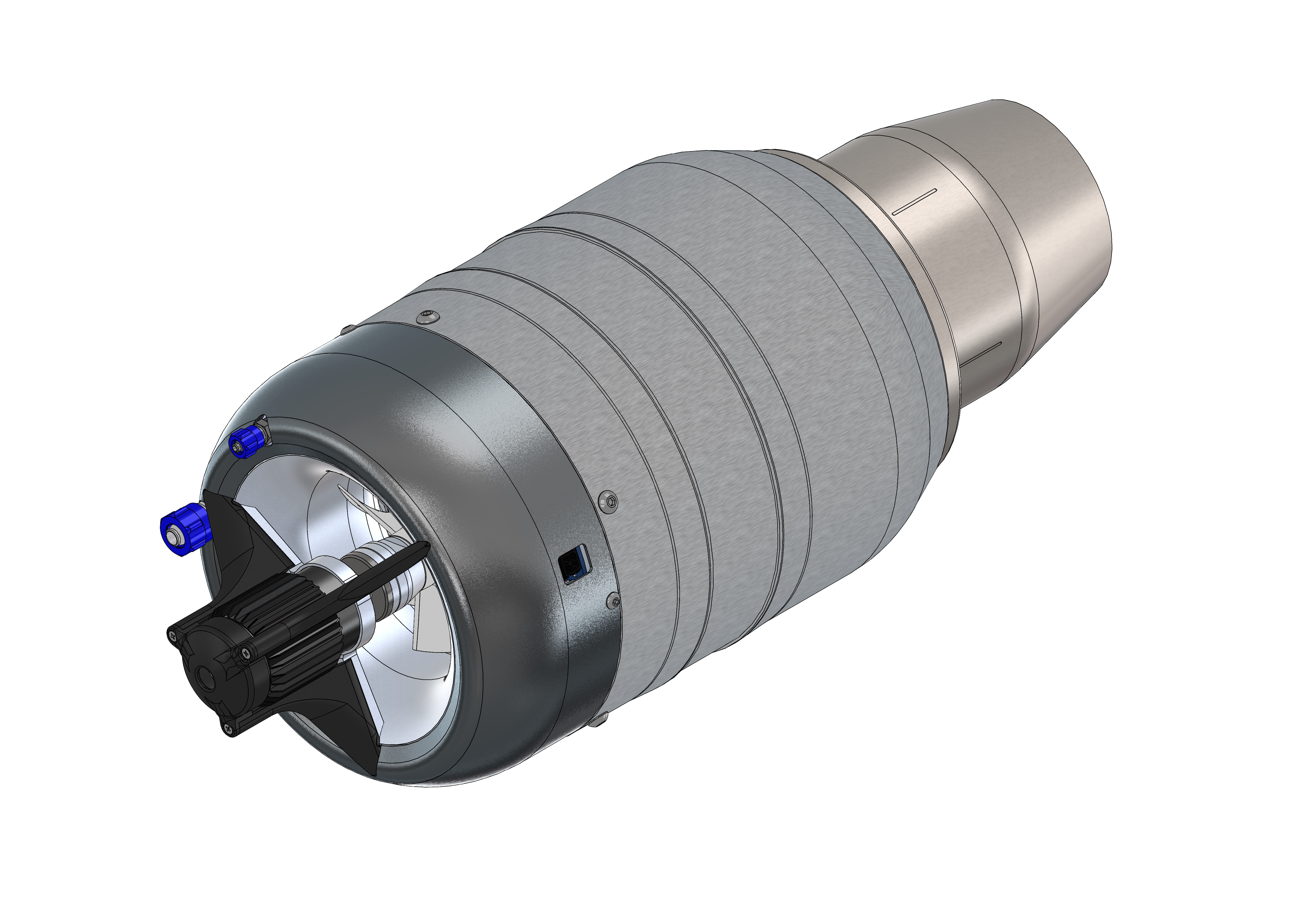JetCat PRO系列涡喷发动机提供最大程度的集成和最简单的安装连接。发动机运行的所有必要外围系统全部集成在发动机前壳内部。客户只需要将电池、油箱和控制信号与发动机进行连接,除此之外,不需要其他任何外部子系统!控制信号通过一根配有15针SUB-D连接器的数据线缆输出,对发动机的供电则通过一根配有XT60连接器的供电电缆与电池相连接。